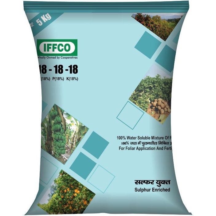• It is a 100% Water soluble mixture of Fertilizer, containing 18% nitrogen, 18% phosphorus and 18% potassium, as well as 6.1% Sulphur.